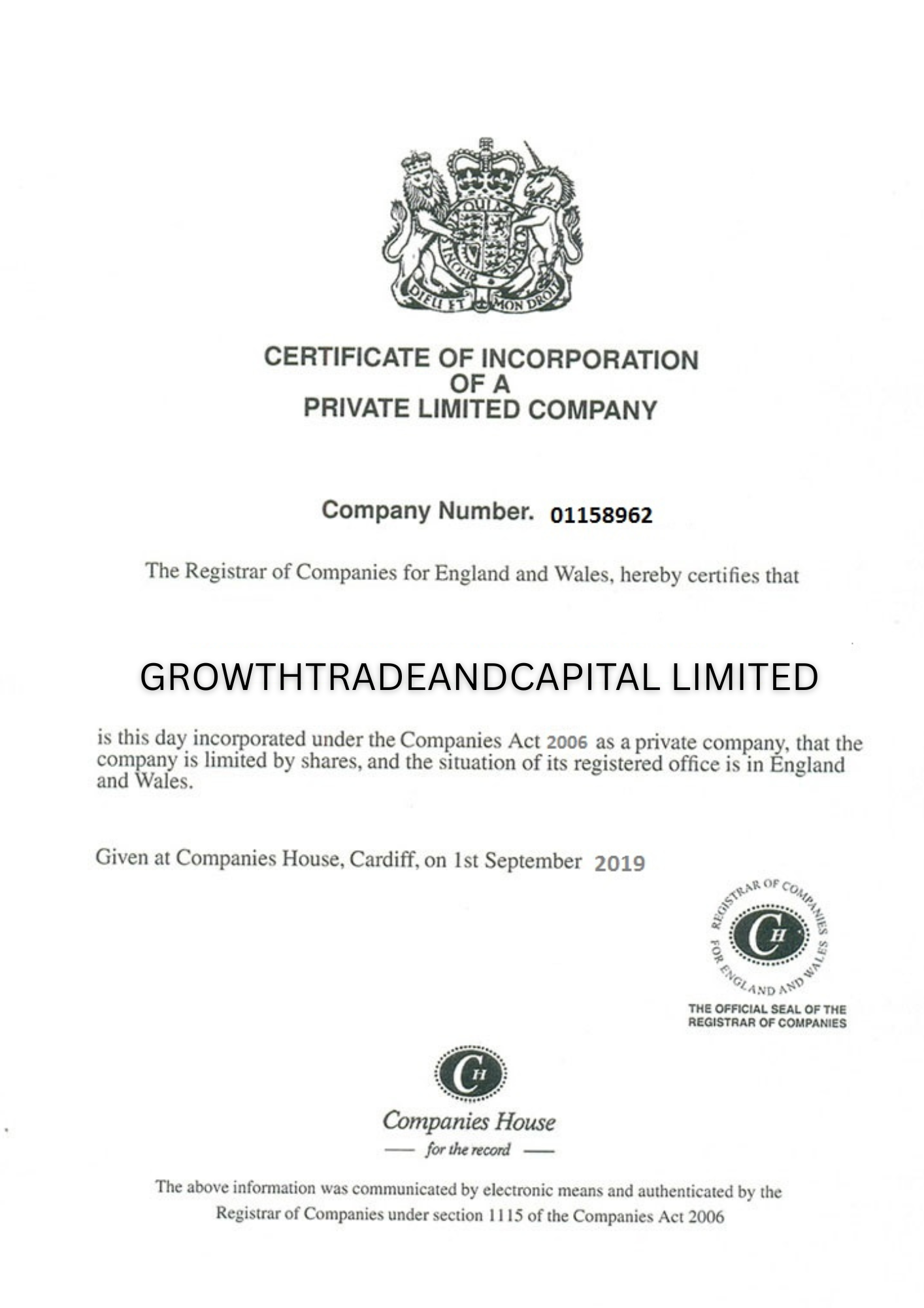 GrowthTradeandCapital is certified and licensed by 7353856 Christchurch, New Zealand.
